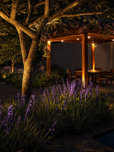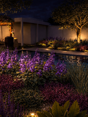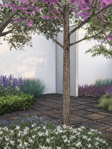 A composição vegetal se inspira nos padrões da natureza, combinando diferentes estratos de plantas adaptadas ao clima e ao solo local. Essa abordagem favorece uma paisagem mais resiliente, integrada ao ambiente e capaz de fortalecer os processos ecológicos do lugar.